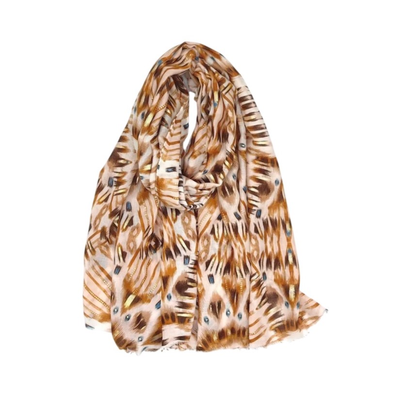 Φουλάρι με έθνικ print & lurex σε μπεζ απόχρωση. Εξαιρετικής ποιότητας και υφής, ιδανική επιλογή για ανάλαφρες καλοκαιρινές εμφανίσεις!