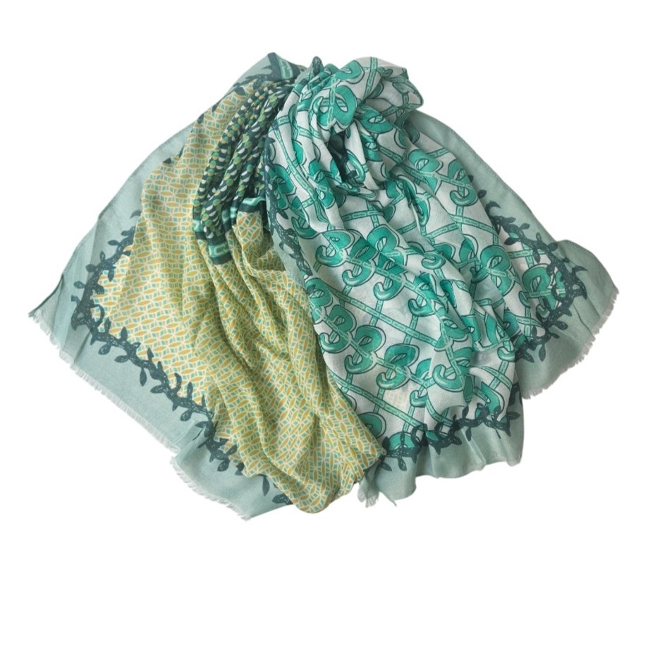 Φουλάρι με all over print σε απαλή mint απόχρωση. Μία διαχρονική επιλογή για να ολοκληρώσετε τις καλοκαιρινές σας εμφανίσεις!
